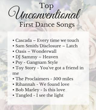 One respondent admitted to having Gangnam Style by PSY for a first dance. Another (which didn't make the list) had their first dance to The Jurassic Park theme song. Not exactly traditional but it was probably very personal to them.